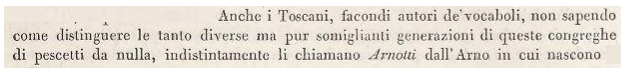 Com a curiositat, Bonaparte també va citar una denominació Arnotto, que derivaria del nom del riu Arno. No podria tractar-se en realitat d´una corrupció del nom avannotto, que ja vam veure aquí, i que significa 'peix d´enguany'?