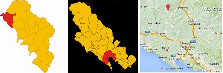 Zeri (a l´esquerra) és el municipi més occidental de la Toscana, a la província Massa-Carrara; és al nord de Spezia, un dels municipis més orientals de la Ligúria i capital de l´homònima província